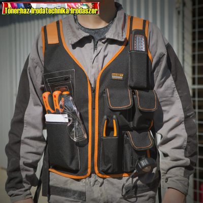 Anyagfelhasználása és kialakítása miatt meglehetősen ellenálló. A hosszú élettartam érdekében az igénybevett pontokon megerősítéssel, multifunkcionális zsebekkel. A mellény számos tárolóhellyel ellátott, többek között 7 zsebbel - melyből 3 zsebfedővel, 1 pedig cipzárral szerelt - igazolvány tartóval, akasztófülekkel. Extra erős igénybevételre készült szerelőmellény. Oldalain 2-2 szabályozható pánttal állítható be a kívánt méret, elején cipzárral záródik.