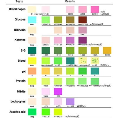 A Vizelet Reagens Tesztcsík (Vizelet) különböző reagenseket tartalmazó tesztzónákat tartalmazó műanyag csík. A teszt a következő analitok kvalitatív és fél kvantitatív kimutatására szolgál vizeletből: Aszkorbinsav, Glükóz, Bilirubin, Keton, Fajsúly, Vér, pH, Fehérje, Urobilinogén, Nitrit és Leukociták. A Vizelet Reagens Tesztcsík (vizelet) egyszer használatos és betegközeli (point-of-care) ellátásban illetve központit laboratóriumban használhatók. A tesztcsík a dobozon feltüntetett specifikus analit(ok) kimutatására szolgál. Az eredmények leolvasásához hasonlítsa össze a tesztcsíkon kialakult színt a dobozon feltüntetett színskála megfelelő analitjának a színével.