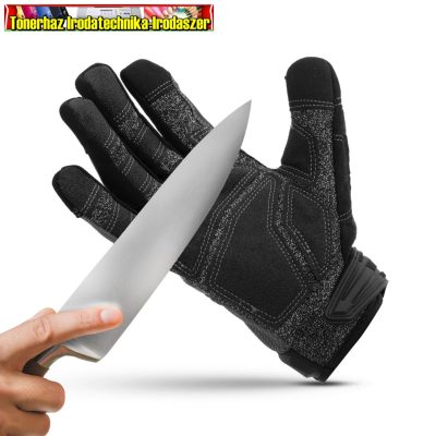 Kiváló fogásbiztonságot nyújtó kesztyű profiknak. Nagyfokú vágásállóság jellemzi, mivel aramiddal (kevlár) és üvegszállal (HPPE) erősített, PVC betétes tenyér résszel rendelkezik. A megerősített varrások még ellenállóbbá és strapabíróbbá teszik. Az érintőképernyővel kompatibilis ujjvégeknek köszönhetően nem szükséges a kesztyűt levennie a képernyők kezeléséhez. Rugalmasságot és védelmet biztosító kézhát, spandex anyagból. A megfelelő rögzítésről extra erős tépőzár gondoskodik.