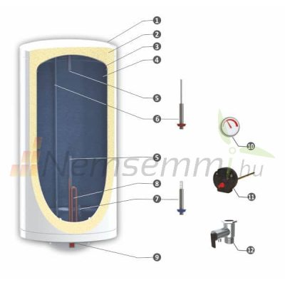• 120 literes SunSystem BB típusú bojler beépített 3kW fűtőbetéttel. Használati melegvíz tároló zománcozott tartály HMV