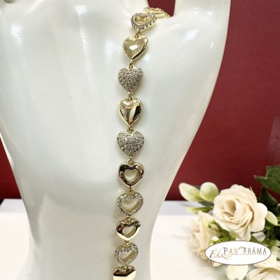 14K Gold Filled karkötő tűkristályokkal - Szívek