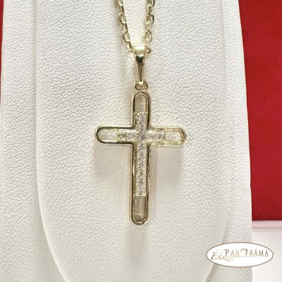 14K Gold Filled anti-allergén, arany színű kereszt medál, kristályokkal díszítve.