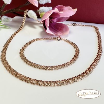 Mérete: a nyaklánc 50 cm hosszú és 5,5 mm széles, a karkötő 20 cm hosszú és 5,5 mm széles.