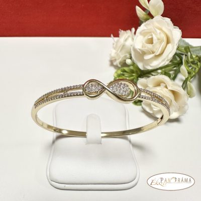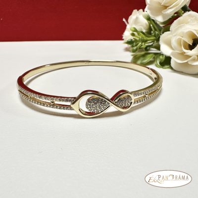 14K Gold Filled nyitható karperec víztiszta kristály díszítéssel, végtelen motívummal a közepén