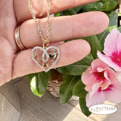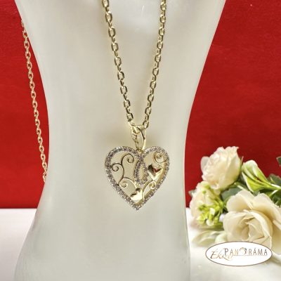 14K Gold filled, arany színű, szív medálos nyaklánc kristályos díszítéssel.