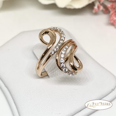 18 K Gold Filled antiallergén gyűrű, széles, hosszított fejjel,kristályokkal díszítve!