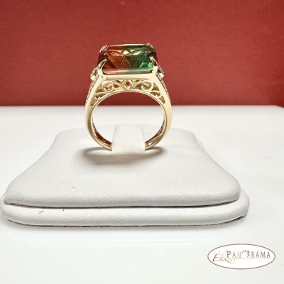 18 K Gold Filled antiallergén gyűrű, zöld színjátszó kristállyal díszítve!