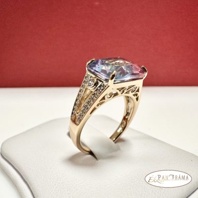 18 K Gold Filled antiallergén gyűrű, kék- rózsaszín színjátszó kristállyaldíszítve!