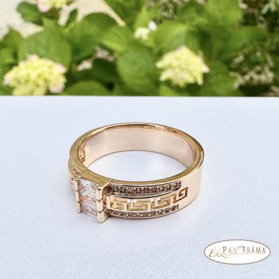 18 K Gold Filled antiallergén gyűrű,görög mintával és kristályokkal díszítve!
