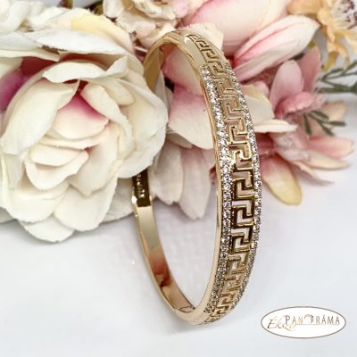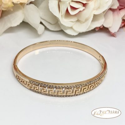 Arany színű, 18 K Gold Filled karperec kristályokkal díszítve.