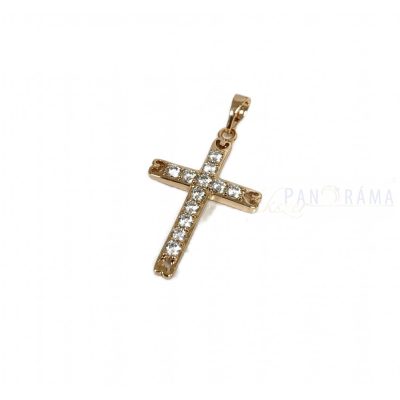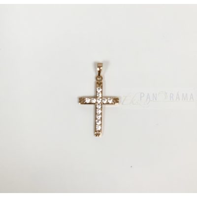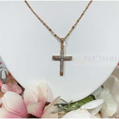 Arany színű kereszt medál, csillogó kristály díszítéssel. Nyaklánccal remek kiegészítője lehet öltözékünknek.
