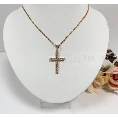 Arany színű, kristályos kereszt medál. Nyaklánccal remek kiegészítője lehet öltözékünknek.