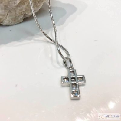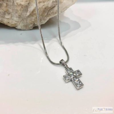 Fehér tűkristályokkal díszített kereszt alakú medál, amit bármelyik nem viselhet!
