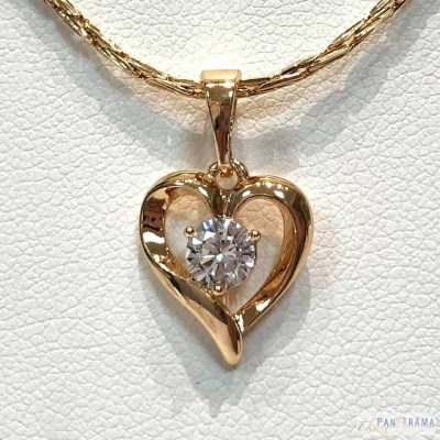 18 K Gold Filled elegáns arany színű nyaklánc medállal. A medál szív alakú, közepe tűkristállyal díszített.