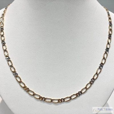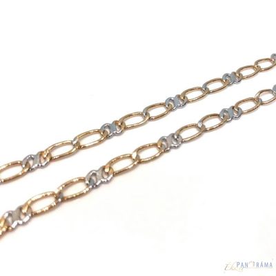 Arany és ezüst színű láncszemei alkotják a nyakláncot.