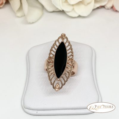 18 K Gold Filled antiallergén hosszú fejű pecsétgyűrű, közepén fekete kővel díszített!