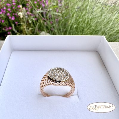 18 K Gold Filled antiallergén pecsét gyűrű, kristályokkal díszítve!