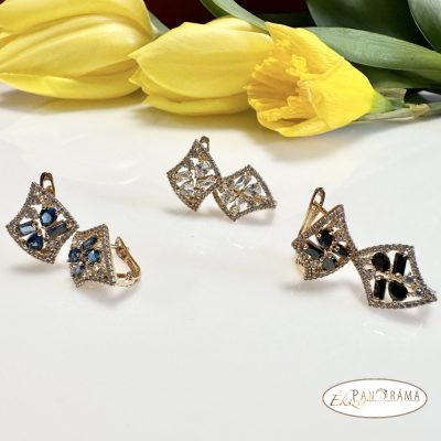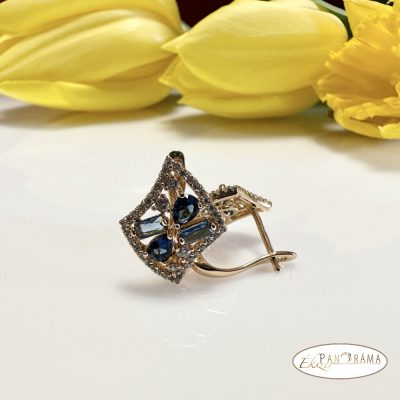 18K Gold Filled, antiallergén kapcsos fülbevaló kristállyal - Emilee blue