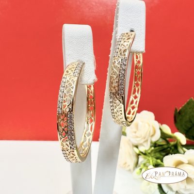 18K Gold Filled , nikkel és ólom mentes, arany színű, karika fülbevaló kristályokkal díszítve.