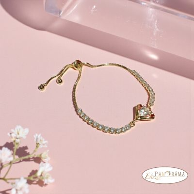 18K Gold Filled, antiallergén arany színű kristályos Karkötő, szív motívummal.