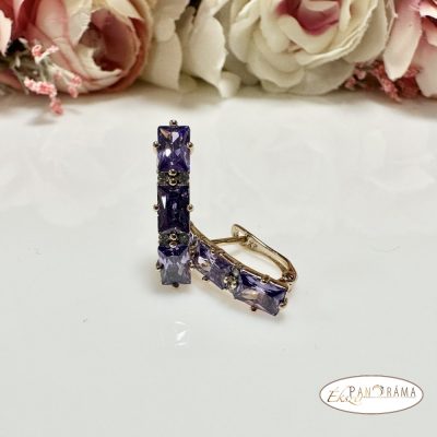 18K Gold Filled, antiallergén, kristályos fülbevaló - Crystine Violet