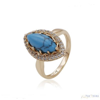 18 K Gold Filled gyűrű,feje ovális türkiz kővel, körülötte apró cirkónium kristályokkal díszített. Több méretben kapható!
