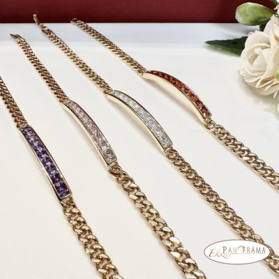 18K Gold Filled, antiallergén arany színű karkötő, kristályokkal díszítve.