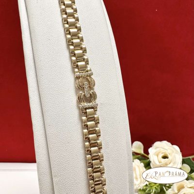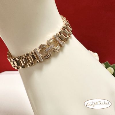 18K Gold Filled antiallergén, arany színű karkötő dupla kapcsolóval, elől kristályos betéttel díszítve.