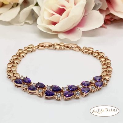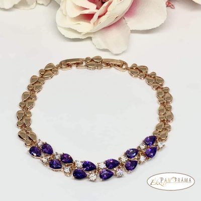 18K Gold Filled arany színű Karkötő lila kristályokkal díszítve.