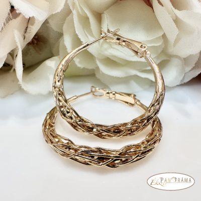 18k Gold Filled anti-allergén, nikkel és ólom mentes, karika fülbevaló különleges fonat mintával.