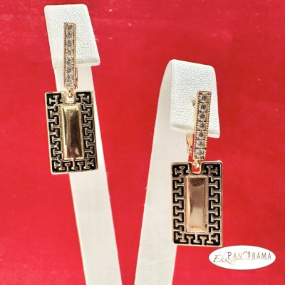 18K Gold Filled anti-allergén, nikkel és ólom mentes arany színű, lógós fülbevaló kristályokkal és görög mintával díszítve.