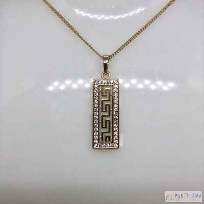 18K Gold Filled anti-allergén medál. Görög mintával és apró cirkónia kristállyal díszített.