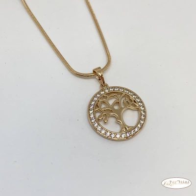 18K Gold Filled anti-allergén életfa medál. Arany színű, kristállyal díszített darab.