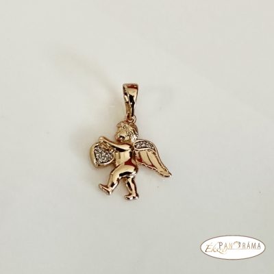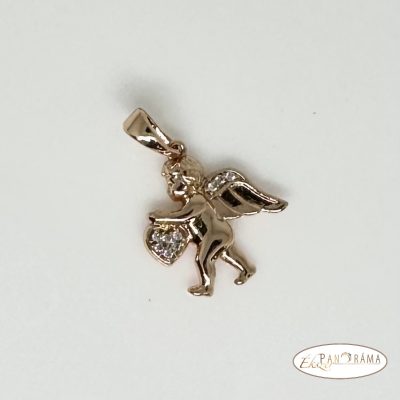 18 K Gold Filled anti-allergén, arany színű angyal medál, kristállyal díszítve.
