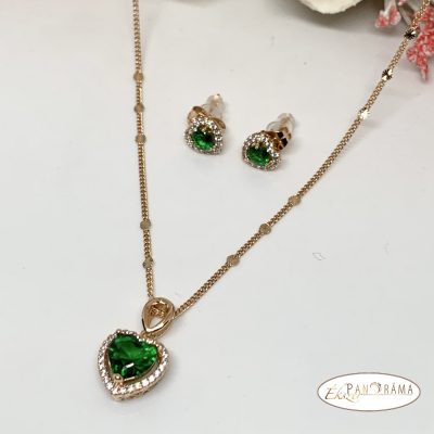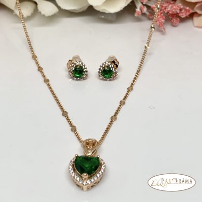 •  18K Gold Filled nyaklánc, fülbevaló szett - smaragd szív