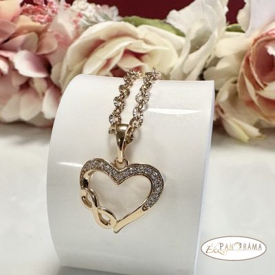 18K Gold Filled antiallergén, nikkelmentes nyaklánc, kristállyal díszített szív medállal