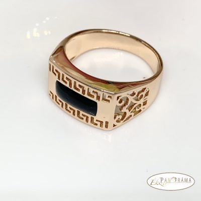 18 K Gold Filled pecsétgyűrű fekete kővel és görög mintával