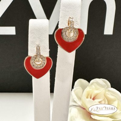 •  18K Gold Filled,antiallergén, beszúrós stiftes fülbevaló - Red heart