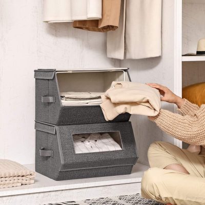 Egymásra rakható és összecsukható:A dobozok egymásra rakhatók, így otthonában helytakarékosan tárolhatja a darabokat.Használaton kívül egyszerűen hajtsa össze, és helyezze az ágy alá.