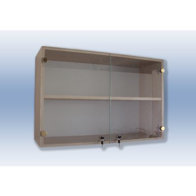 Laminált bútorlapból készült szekrénytest, 2 üvegajtóval. Az ajtó biztonsági zárral van ellátva. Alapszín: fehér.