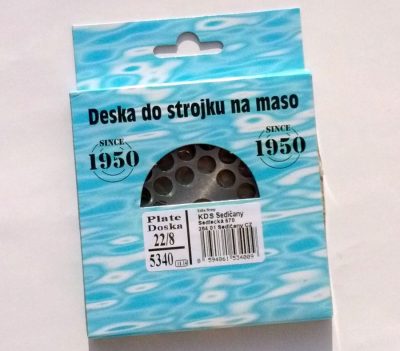 Cseh gyártású húsdaráló rostély, használható a legtöbb 22-es húsdarálóhoz. Kemény, edzett acél, jó minőségű termék. Porkert húsdarálónak is ez a rostély a tartozéka, így Porkert csomagolásban is előfordul.