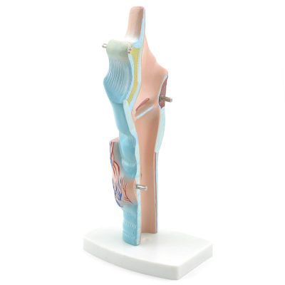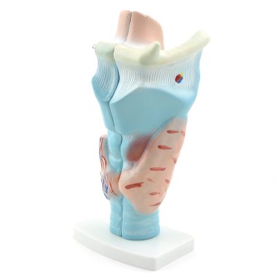 Ez a 3 darabos gégemodell 3x-os nagyításban ábrázolja az emberi gégét, és a középső metszeteknek köszönhetően lehetővé teszi a mélyebb rétegek részletes megtekintését is. A gégemodell nemcsak a gégét, hanem a környező struktúrákat is ábrázolja, mint például a légcsövet és a pajzsmirigyet, így ugyanúgy alkalmas az anatómiai struktúrák bemutatására, mint a műtétek és a betegségek magyarázatára a betegeknek.