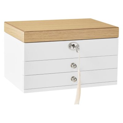 • [ELEGÁNS ÉS CHIC] Letisztult vonalak, elegáns fehér, stílusos fa erezetű fedél – ez a 3 szintes csecsebecsés doboz frissességet hoz otthonába, és elegáns kiegészítője a fésülködőasztalának
