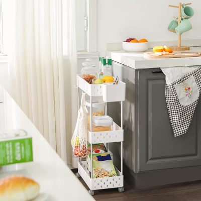 • TARTSA IRÁNYUL A KÁOSZT: Vannak piperecikkek vagy konyhai eszközök a fürdőszobában vagy a konyhában?Tárolja őket szépen ebben a 3 szintes kocsiban!Ezáltal az otthona újra a jólét oázisává változtatja