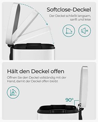 • Halk, szagmentes záródású fedél: A szemetes lassan és csendesen záródó fedele segít megakadályozni a kellemetlen szagok kijutását.