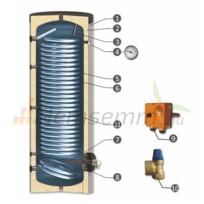 Megnövelt csőkígyó felülettel – a magasságot a vízmelegítő kisebb átmérőjével kompenzálják; ideális sok fogyasztós fűtési, napkollektoros és hőszivattyús rendszerekhez. Opcióként rendelhető elektromos fűtőtesttel is.