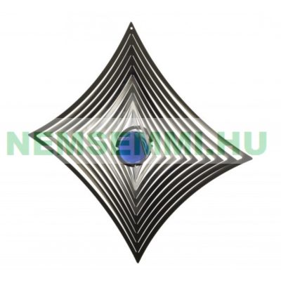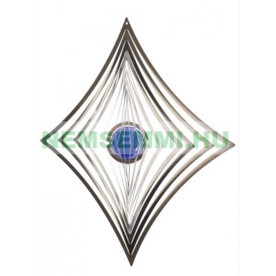 • 3D fém szélforgó kör rozsdamentes acélból 19x19 cm széljáték kék gyöngy betét