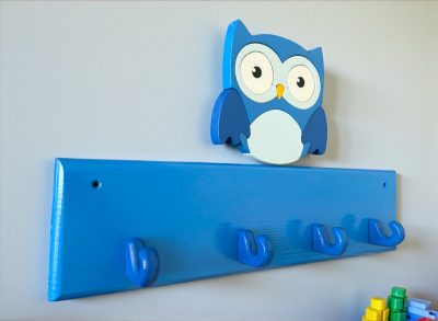 4 akasztós fa gyermekfogas bagoly dísszel, kék