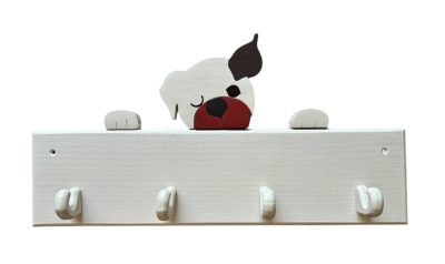 • 4 akasztós fa gyermekfogas boxer kutya dísszel, 2 különböző méretben
