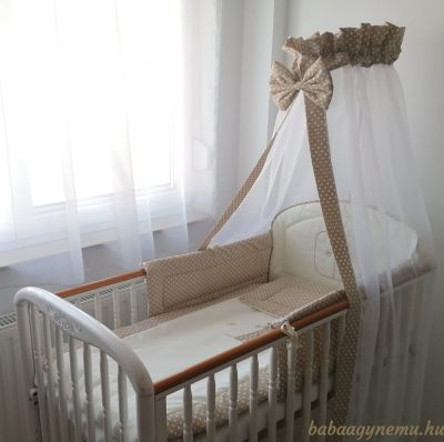 ANYAGVÁLTOZÁS! Bézs pettyes anyag a mellékelt fotó szerint !4 részes babaágynemű garnitúra